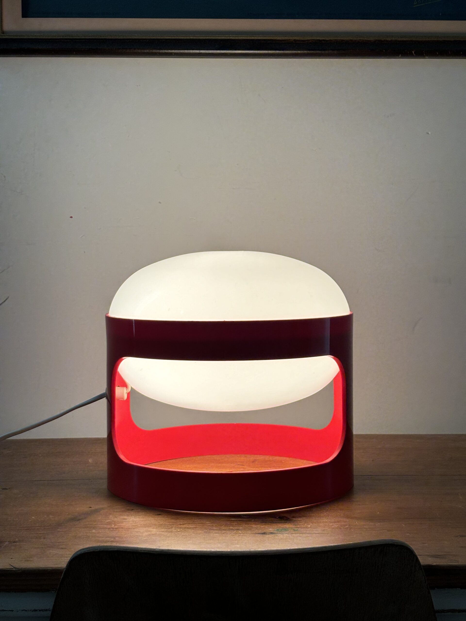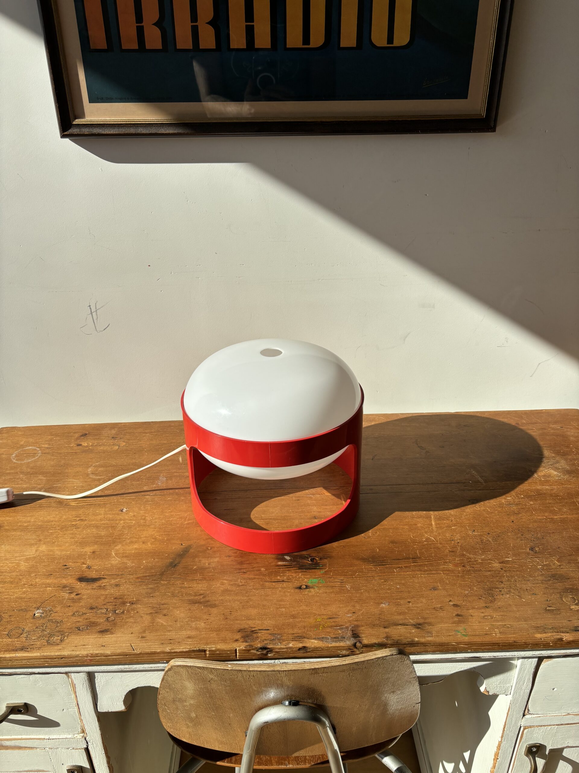 A red KD 28 table lamp designed by Joe Colombo for Kartell in 1967.