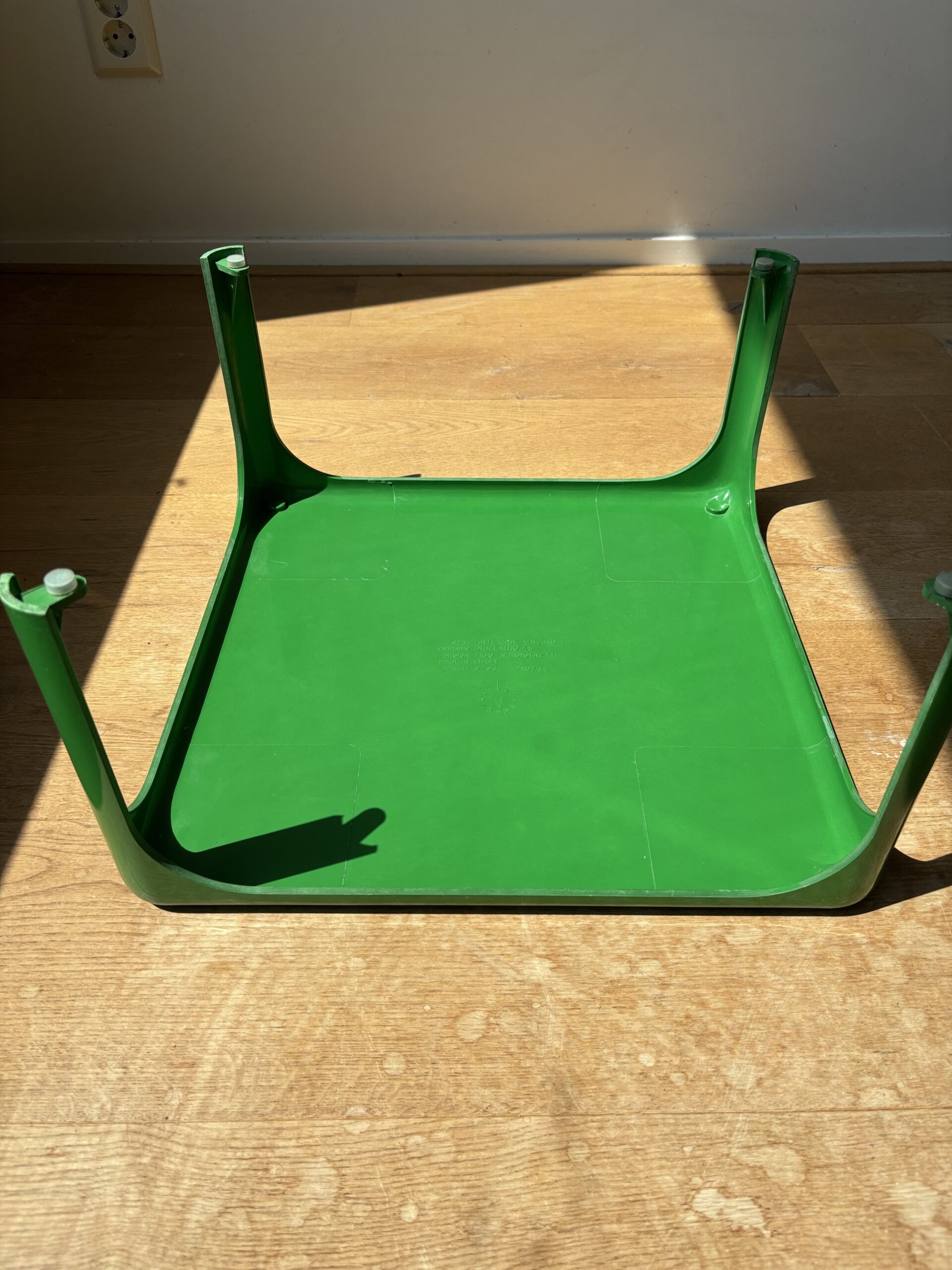 A green Demetrio (model 45) table designed by Vico Magistretti for Artemide in 1964.