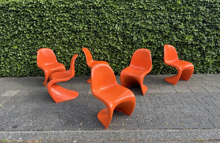 Original orange "S" chairs, designed by Verner Panton in the 1950s/1960s and produced by furniture company Herman Miller.